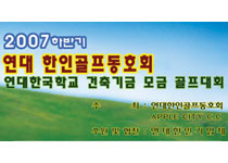 11¿ù 14ÀÏ Ä¡»þ(APPLE CITY C.C)¿¡¼ ¿¬´ëÇѱ¹Çб³ °ÇÃà±â±Ý ¸ð±ÝÀ» À§ÇÑ 2007³â ÇϹݱâ ÇÑÀΰñÇÁ´ëȸ°¡ ¿¸°´Ù. À̹ø ÇÑÀΰñÇÁ´ëȸ´Â ¿¬´ëÇÑÀΰñÇÁµ¿È£È¸¿Í APP..